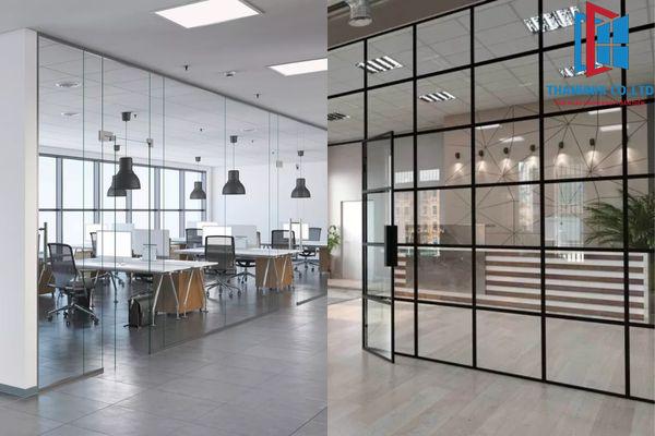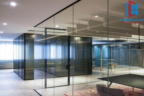 Vách kính cường lực nổi bật với độ bền cao và không chiếm nhiều diện tích, do đó chúng rất được ưa chuộng trong các công trình hiện đại ngày nay. Phần lớn các trung tâm thương mại, văn phòng, nhà hàng… đã chuyển sang sử dụng vách kính thay thế cho vách ngăn truyền thống với độ dày kính từ 10mm trở lên, giúp tiết kiệm không gian và cách âm, cách nhiệt tốt.