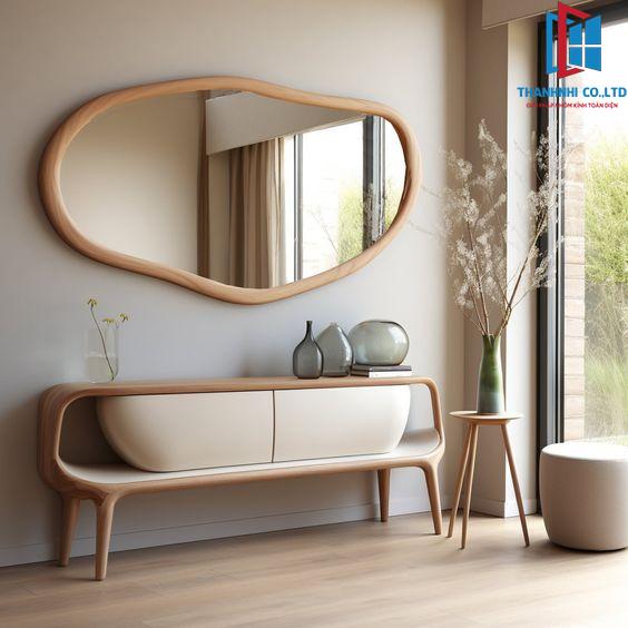 - Gương mang đến sự hiện đại và tinh tế cũng như là món nội thất góp phần làm tăng độ sáng cho căn phòng.