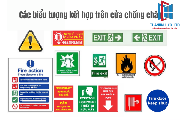 Ngoài các ký hiệu cửa chống cháy nêu trên, trong các hệ thống phòng cháy chữa cháy tại đơn vị thường bổ sung thêm biển bảng biểu tượng các chỉ dẫn có liên quan đến công tác thoát nạn được gắn trên thân hoặc xung quanh cửa chống cháy như: